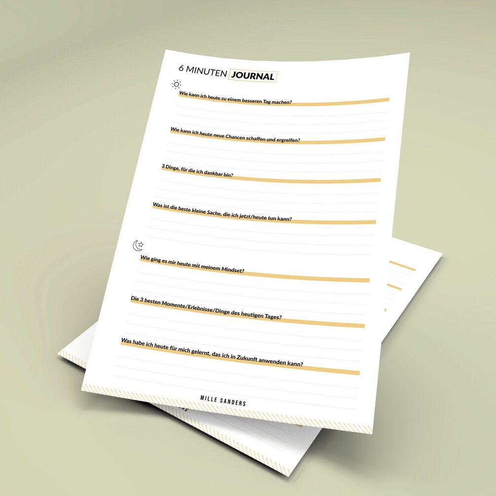 🇩🇪 6 Minuten Journaling - Vorlage mit Fragen (PDF)