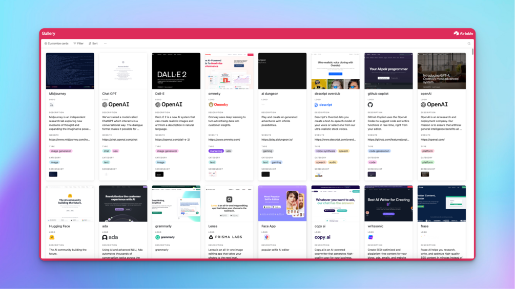 Access to the curated Airtable list of +3200 AI tools