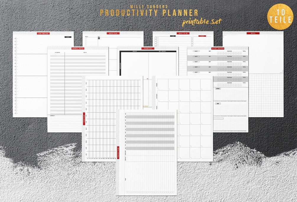 🇬🇧 Productivity Planner - 10 templates - printable set